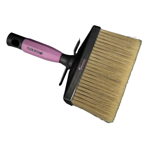 PROFESYONEL ÜST: birinci kalite sarı kıldan yapılmış, pişirilmiş, sentetik elyaflarla yeniden hazırlanmış tavanlar için büyük fırça. Düşme önleyici çıta, yumuşak dokunuşlu tutamak, epoksi yapıştırıcı. İnce yüzeyler için her türlü su bazlı boya için uygundur.